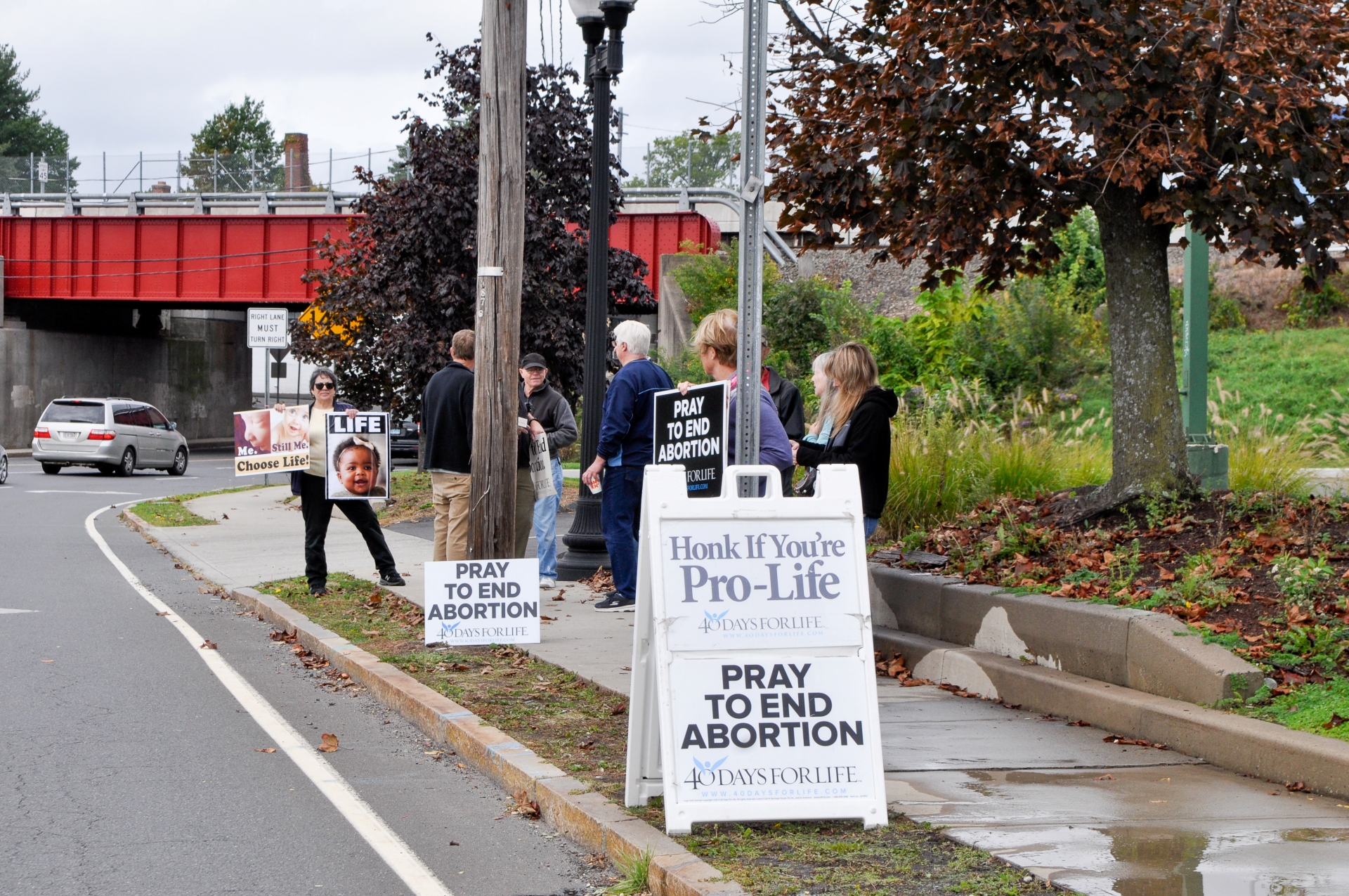 WEST HARTFORD – Men and women of all ages stood on the sidewalk along busy New Britain Avenue. Some held rosaries and prayed. Others approached the curb with signs that read “Pray to End Abortion” and “Choose Life.” A nearby sandwich board read “Honk if You’re Pro-Life.”