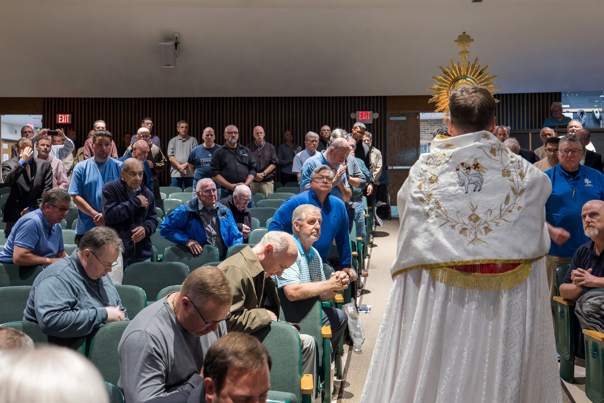 Father Jim Sullivan, Chaplain of the Connecticut Catholic Men’s Conference, processed around the auditorium with the Blessed Sacrament so the men could adore Jesus and ask for His blessing. Photo by Aaron Joseph.