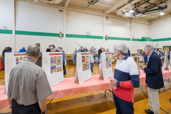 Most of the men were pleasantly surprised to learn of the great number of Eucharistic miracles that have occurred over the centuries as displayed in an exhibit put together by Blessed Carlo Acutis. Photo by Aaron Joseph.