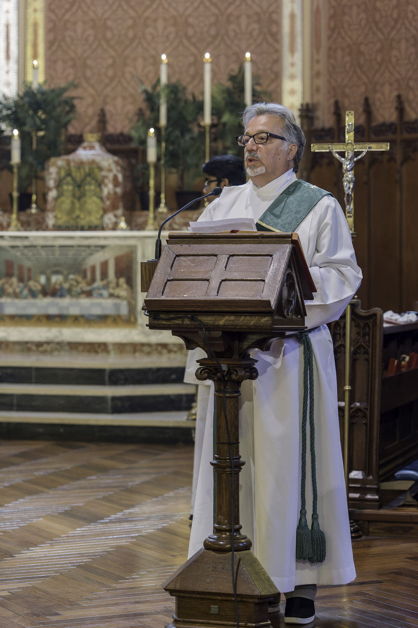 Deacon Ernie Scrivani proclaims the Gospel in St. Mary Church, part of Blessed Michael McGivney Parish in New Haven. He has written his own reflections, meditations and prayers for the stations of the cross.