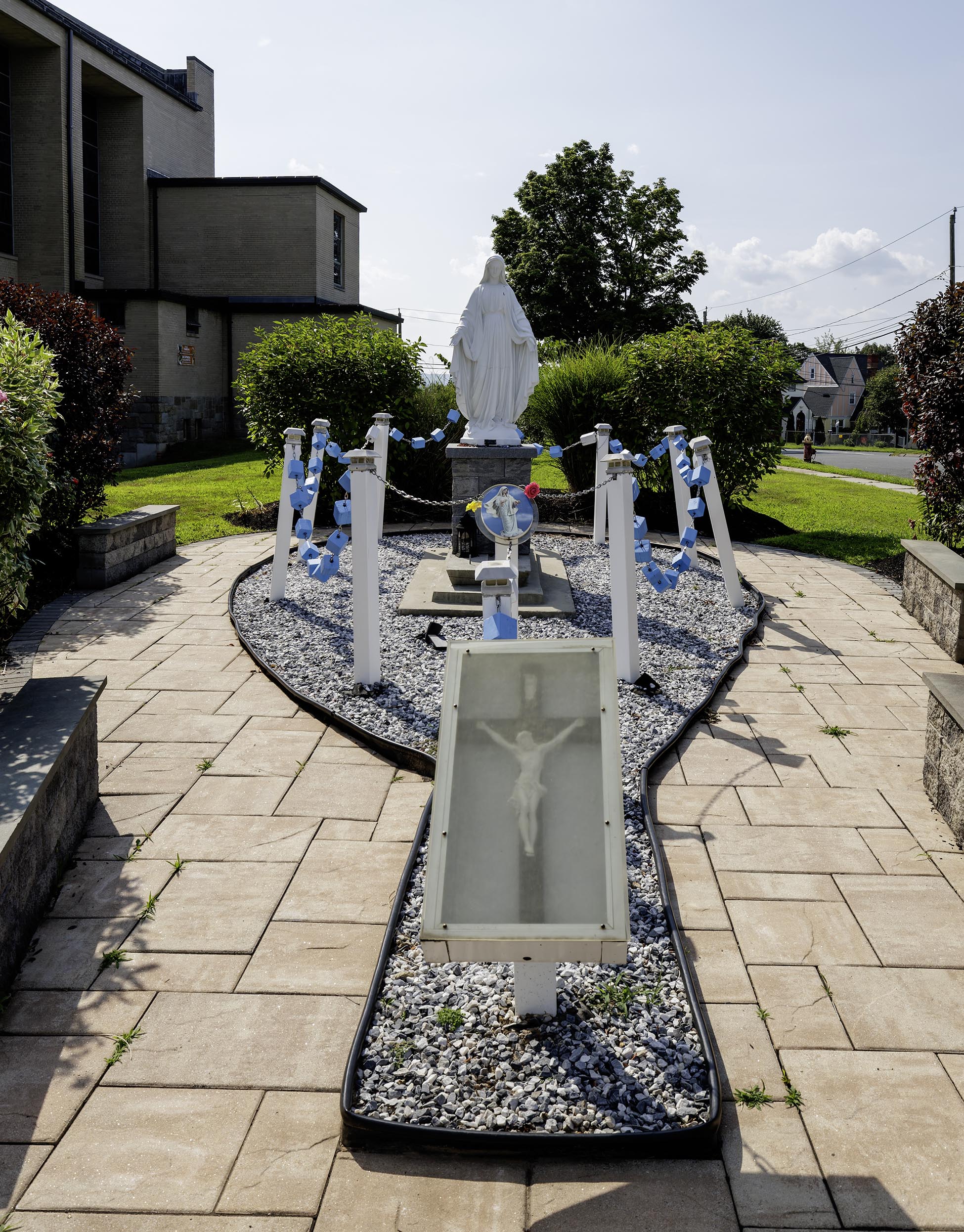 Mary welcomes visitors for a prayerful respite in the rosary garden on the grounds in Hartford. PHOTO BY AARON JOSEPH
