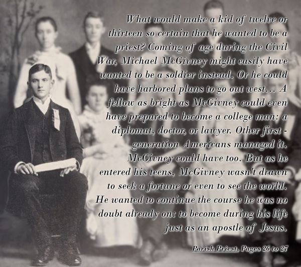 "...a parish priest is all that he wanted to be." From "Parish Priest: Father Michael McGivney and American Catholicism" - Pages 201 to 202