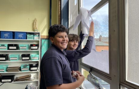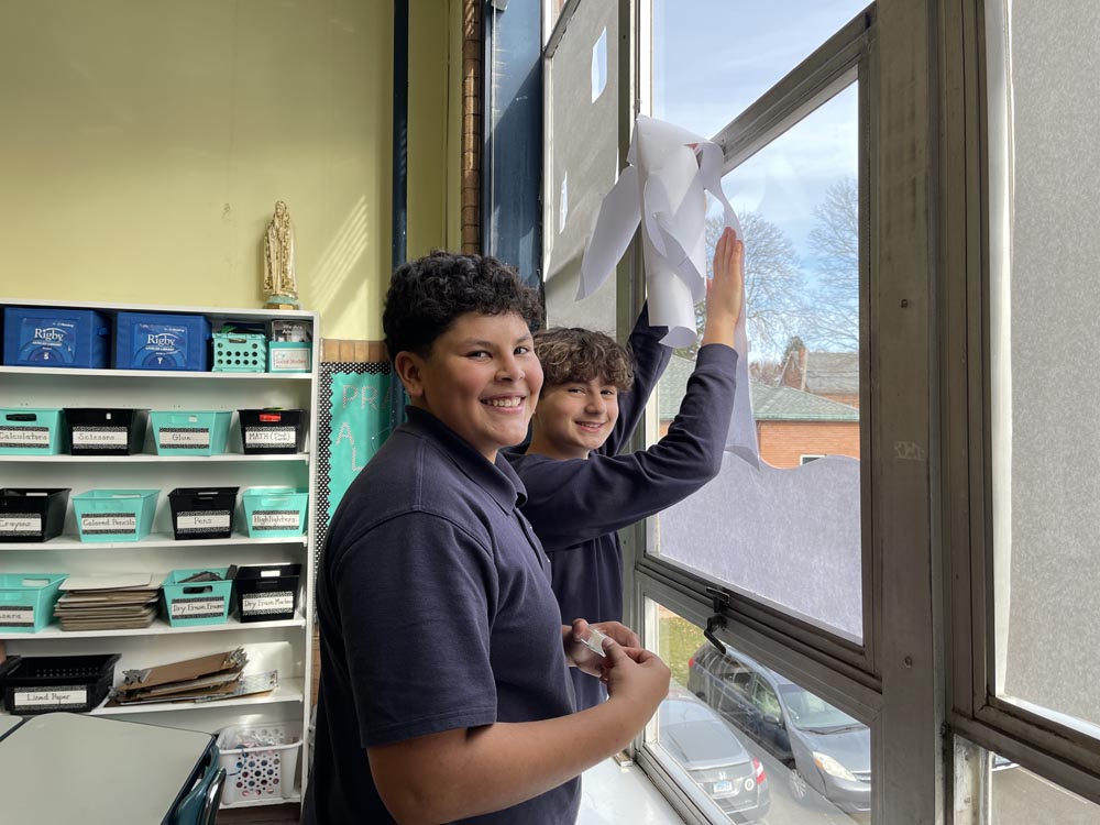 Just in time for the Wallingford Stroll in December, the eighth-grade students at Holy Trinity School in Wallingford completed their annual Christmas window display − to the delight of school neighbors and town residents.