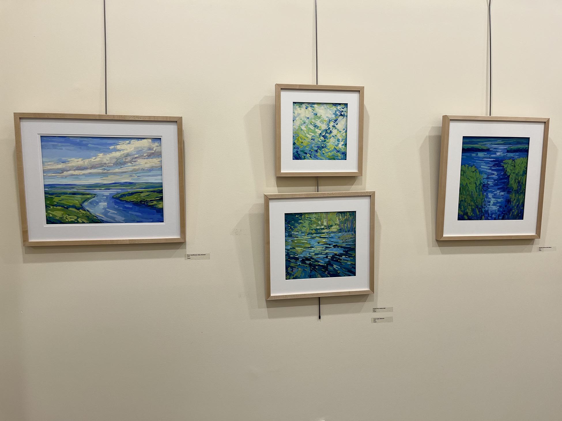 PHOTO BY KAREN A. AVITABILE The exhibit “Watershed Journeys” was most recently on display in the Clare Gallery. The exhibit included paintings by Diana Rogers, an artist from Connecticut. “The waterways connect all who live in New England,” she said in the artist statement. “I feel a deep kinship with the Connecticut River and the surrounding watershed. In this exhibition, I add a visual voice that celebrates the beauty and character of the waterways and calls attention to the need for continued care and stewardship of this vital natural treasure.”