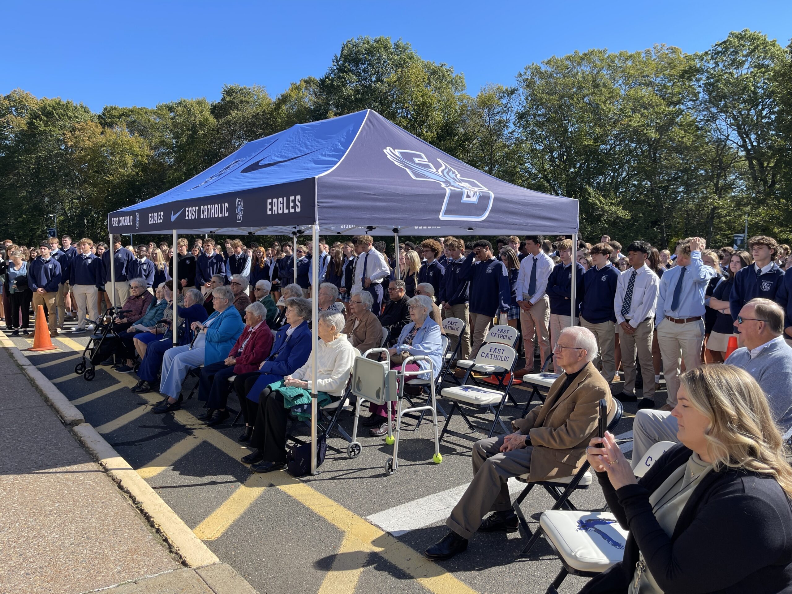 Students and faculty at East Catholic honored the Sisters of Notre Dame de Namur with a Mass and the dedication of a new Marian grotto at the high school: the Sisters of Notre Dame de Namur Grotto.