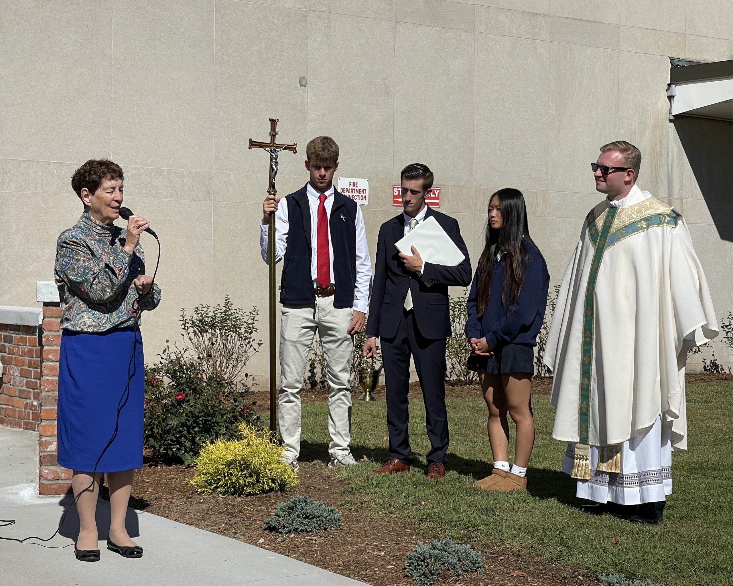 As the Sisters, the entire student body, and archdiocesan officials looked on, Father Hackenjos blessed the new grotto along with the student choir members who performed at the event.