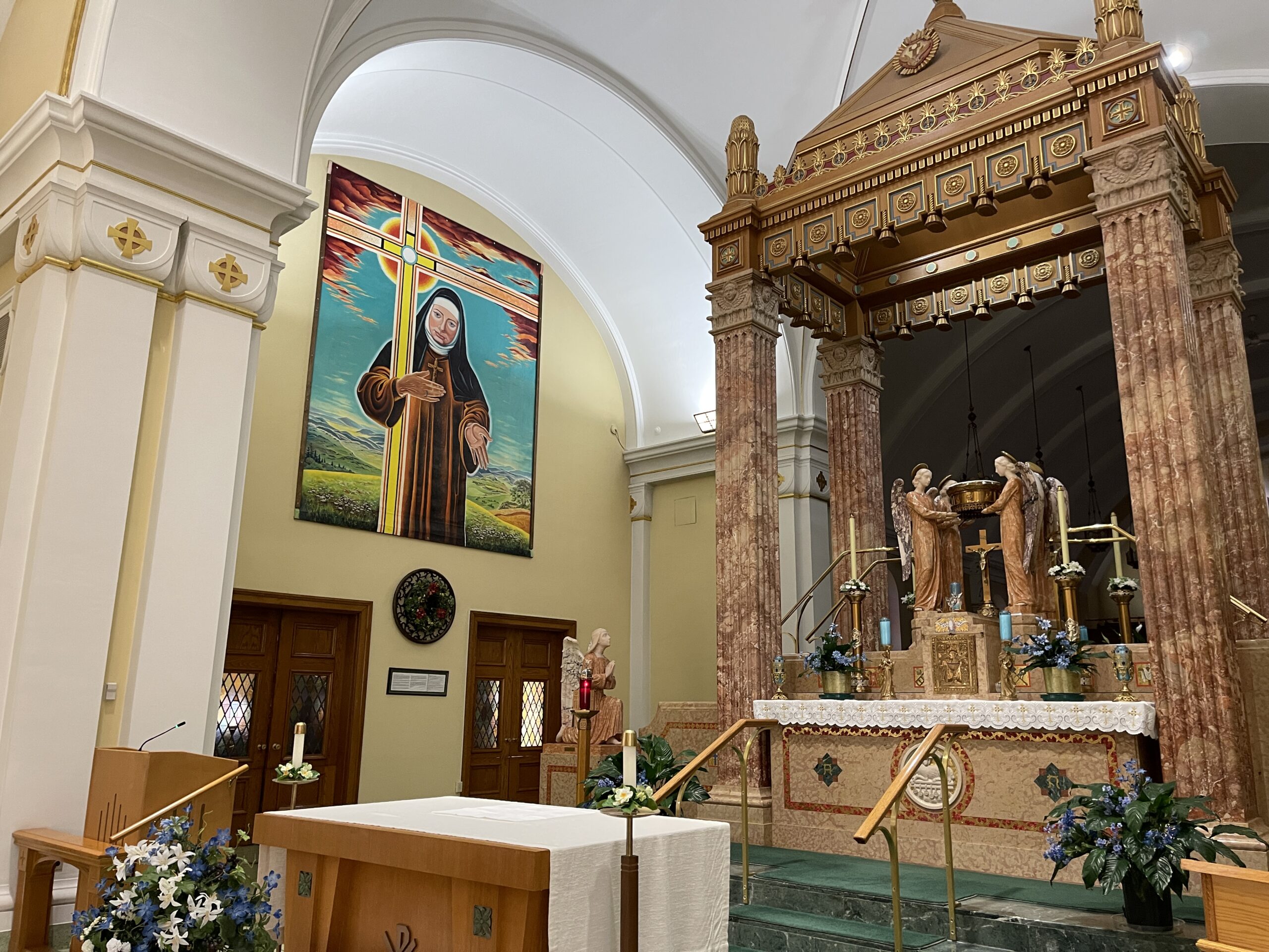 A tapestry of Blessed Mary Angela Truszkowska that was at her Beatification in Rome hangs in the sisters’ double-sided chapel. PHOTO BY SHELLEY WOLF