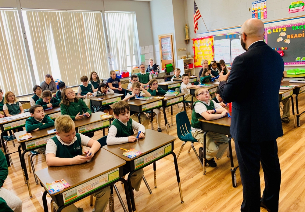This week is National Catholic Schools Week! It has been celebrated annually throughout the United States for the past 46 years. Today, at St Joseph School, the theme was VOCATION. The school principal Mr. Eric Frenette invited Father Ivan to visit each class.