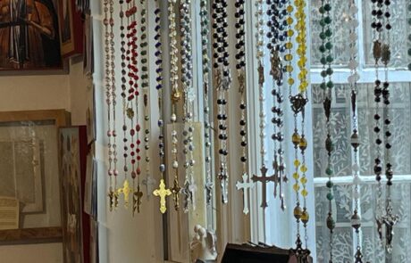 The shop carries a large inventory including prayer books, artwork, chapel veils, garden statues, jewelry, rosaries, children’s articles and baby items. A Christmas room inside the shop is open year-round. On occasion, several religious items are given to the shop by customers who no longer have need for them.