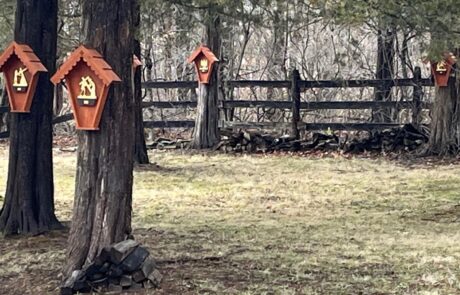 In addition to visiting the shop, passersby are invited to pray the stations of the cross which were recently installed along the perimeter of the property. An outdoor stage for concerts and plays, with seating for hundreds, is located on the property and available for use. An outdoor garden devoted to Mary is currently being developed.