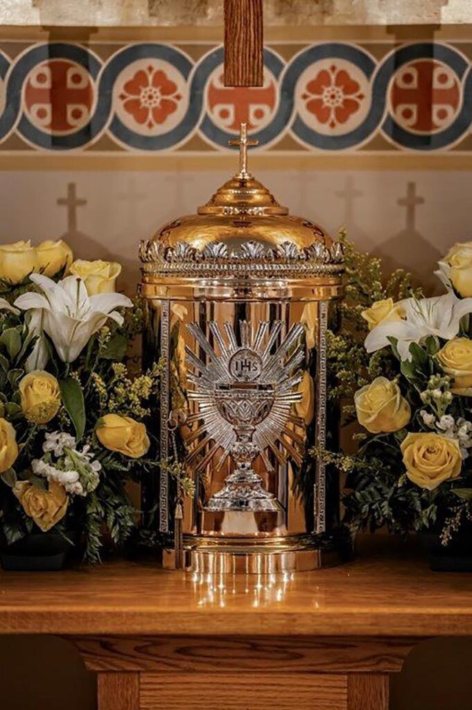 The newly refurbished tabernacle in the Blessed Sacrament Chapel.