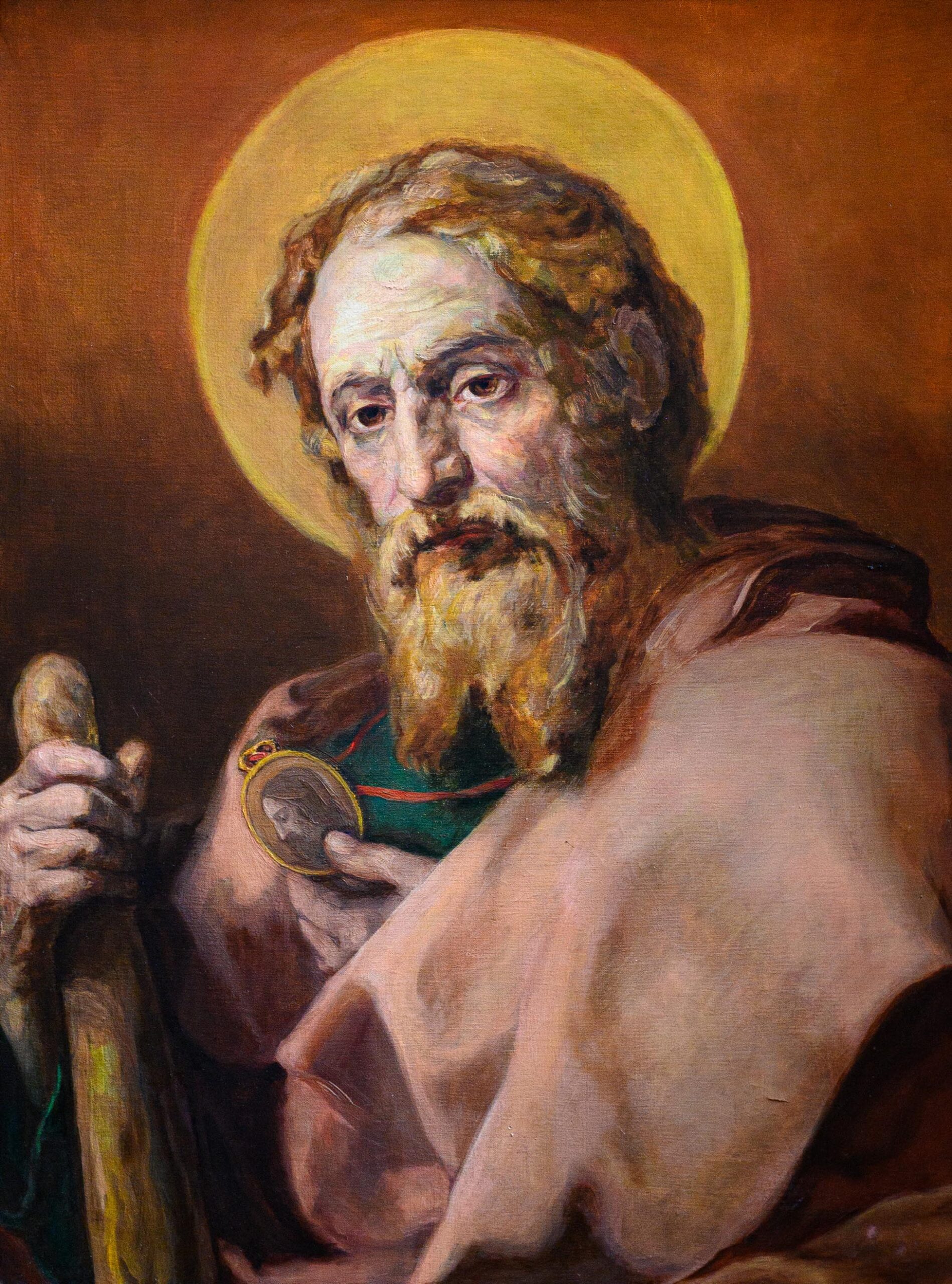 Credit: ADOBE STOCK A painting of St. Jude Thaddeus hangs in St. Peter’s Church in Vienna, Austria. The saint is often depicted in art holding a club or halberd, which are symbols of martyrdom. He is remembered as a loyal follower of Jesus Christ and as a man of great faith and courage. He was canonized in the year 1480.