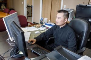 By 2007, Father Mai was studying in a seminary in Vietnam, but when the opportunity came in 2009 for him to come to the U.S. as a refugee, he took it. His family in the U.S. sponsored him. “So that’s why I’m here,” he says. “I knew no English but the Archdiocese of Hartford supported me to learn English and to continue with my vocation.”