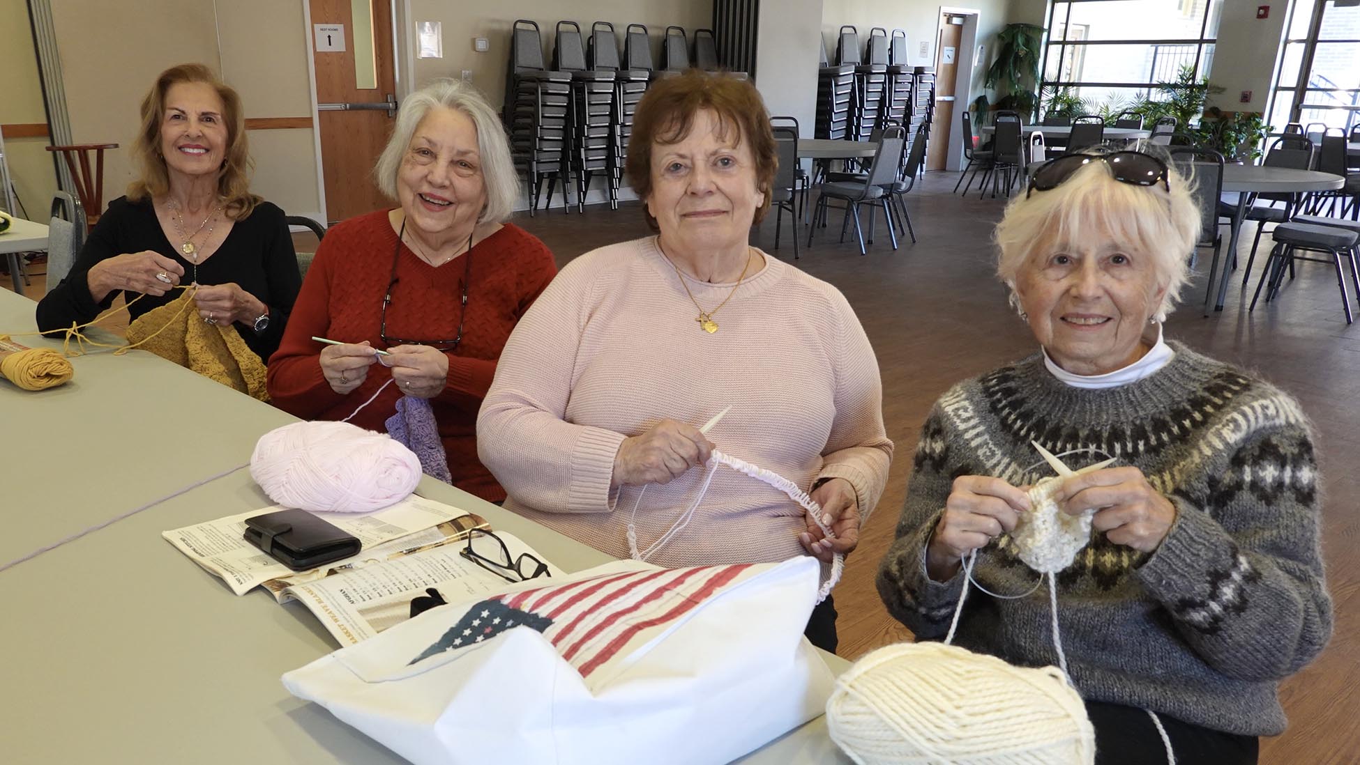 From left, Maria Batick, Kathleen Martone, Peggy DeCusati and Carol Zaffino meet at St. John Bosco parish center for a monthly knitting session.