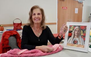 “Every night, a voice in my head told me this would be a wonderful thing to do; I could even visualize the shawls and passing them out,” says Maria Batick of St. John Bosco Parish of Branford. “The voice was persistent and told me, ‘just do it.’”