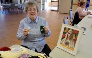 Upon retiring in December 2015, she started the prayer shawl ministry at St. John Bosco Parish, which includes St. Mary and St. Therese churches, where the knitters continue to distribute shawls and blankets to the infirm, baptized infants, those confronting a crisis and anyone who requests one.