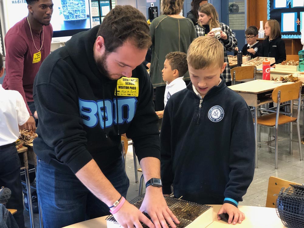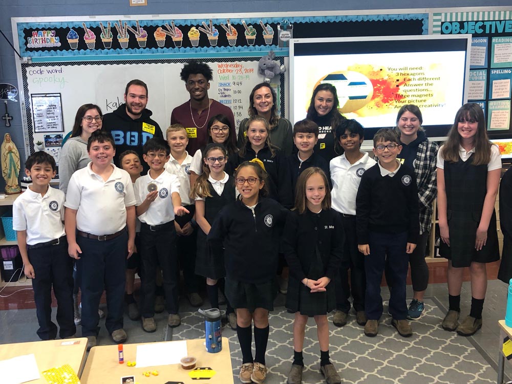 St. Mary School in Milford welcomed special guest visitors to their fourth grade! Dr. Deirdre Yeater, her colleague Dr. Pierce, and a group of her students from Sacred Heart University did a presentation about the importance of bees. Students learned all about bees, made their own bee habitats to bring home, were given honey to take home to taste and even allowed to take home “bee slime.” This is the 3rd year this collaboration has brought the 2 schools together and each time exploring an important and current science lesson!
