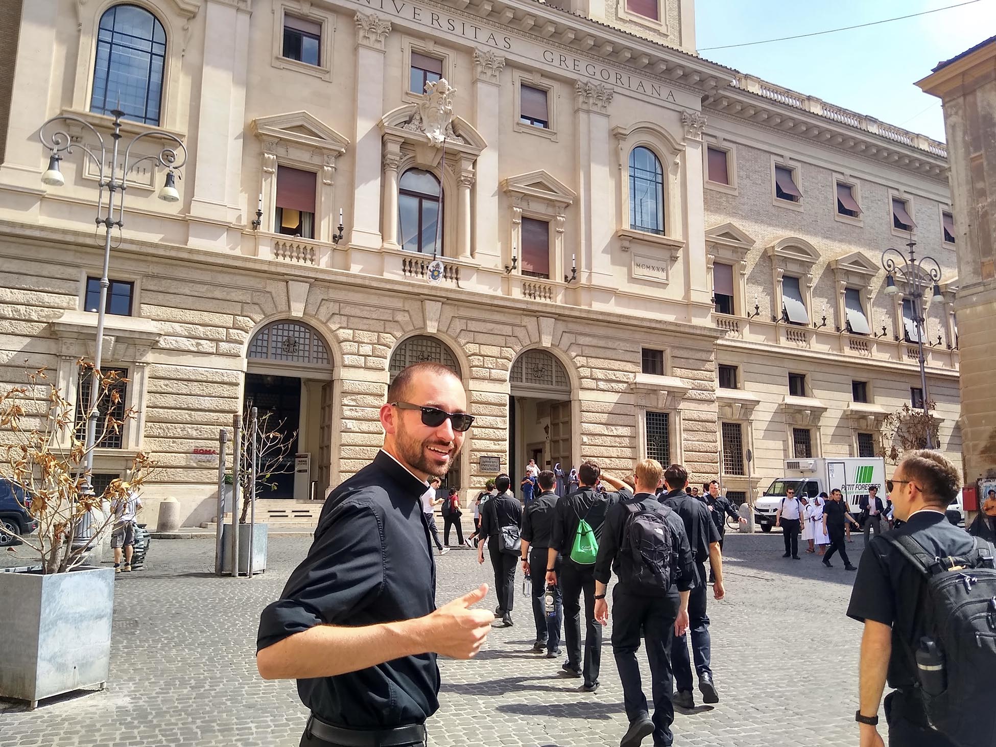 Finnegan and Chapman, both in their second year of theology studies, reside at the North American College and attend the Pontifical Gregorian University, the oldest Jesuit University in the world. It’s quite different from their earlier seminary experience.