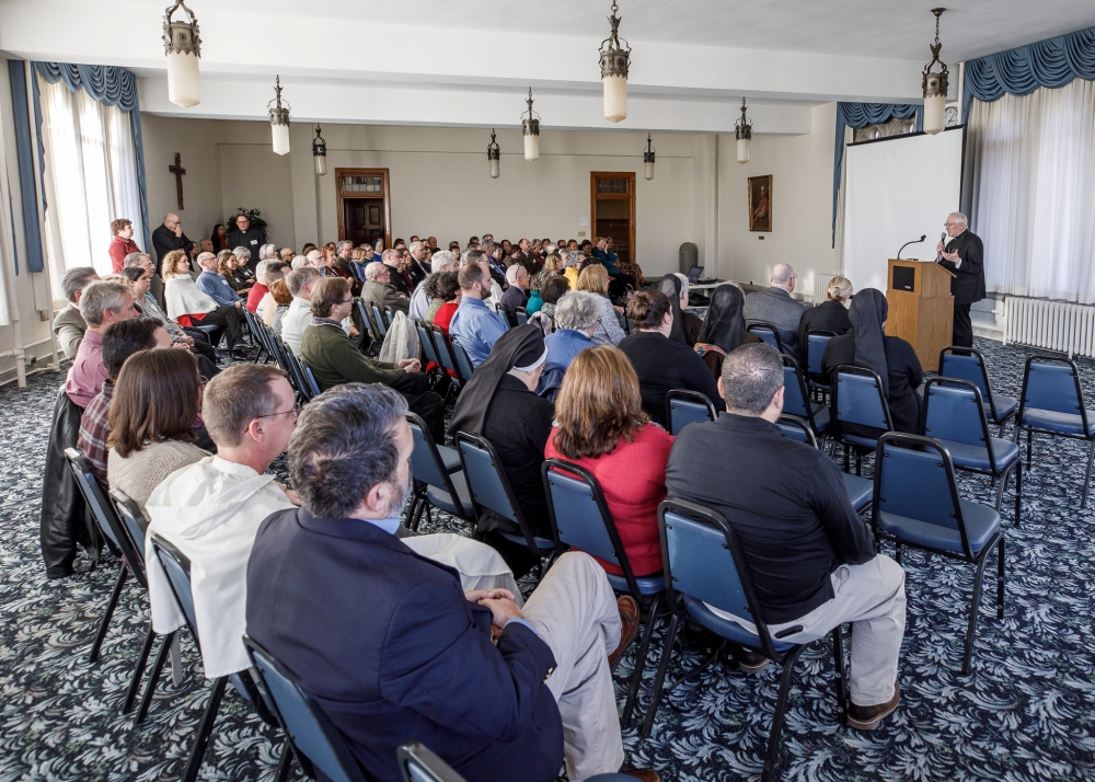 An Epiphany Gathering of Delegates of Synod 2020 was held yesterday at the Archdiocesan Pastoral Center in Bloomfield. It began with introductions by Archbishop Leonard P. Blair, Archbishop of Hartford, and Sister Mary Grace Walsh, Provost for Education, Evangelization and Catechesis, and a presentation by Kelly Henderschedt, Archdiocesan Director of Catechesis, on the “Pathway to Discipleship.” Archbishop Blair then offered the Holy Sacrifice of the Mass in the Pastoral Center Chapel with several priest-concelebrants. A reception followed, which allowed delegates to share ideas and experiences.