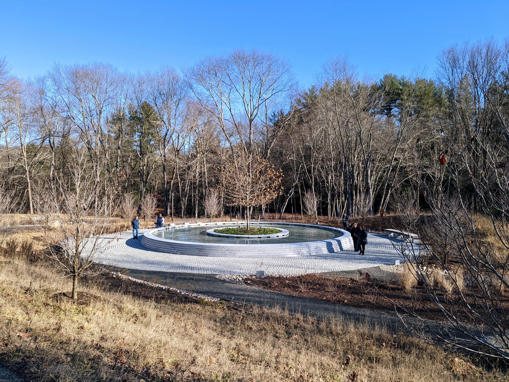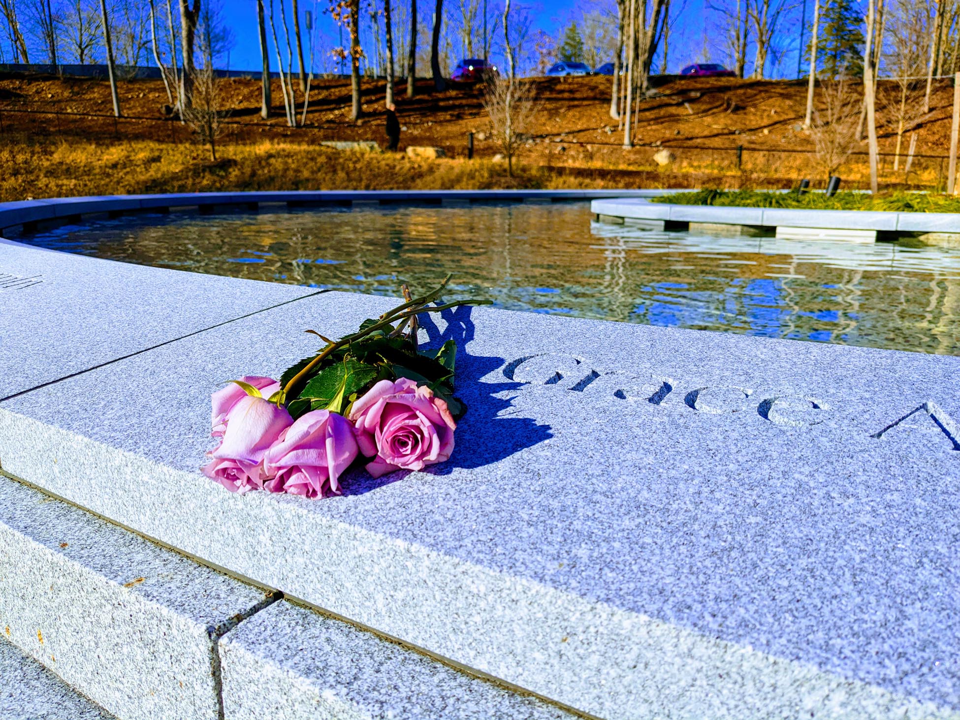 With gently flowing water and meandering paths, the memorial provides a refuge meant to accommodate what I can only imagine are a wide range of needs: a space to ponder, pray, sit, wander, grieve, heal, simply remember. With woodland walks and natural ponds embracing a circular granite basin carefully etched with the names of those who perished that day in 2012, the memorial offers a simple beauty. It’s a beauty portraying a love and a care for those being remembered without dismissing the enormity of loss endured by the parents, family, friends, and Newtown community.
